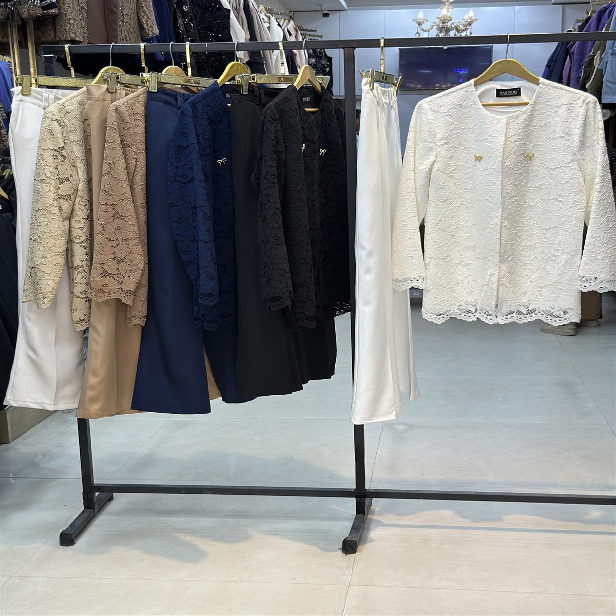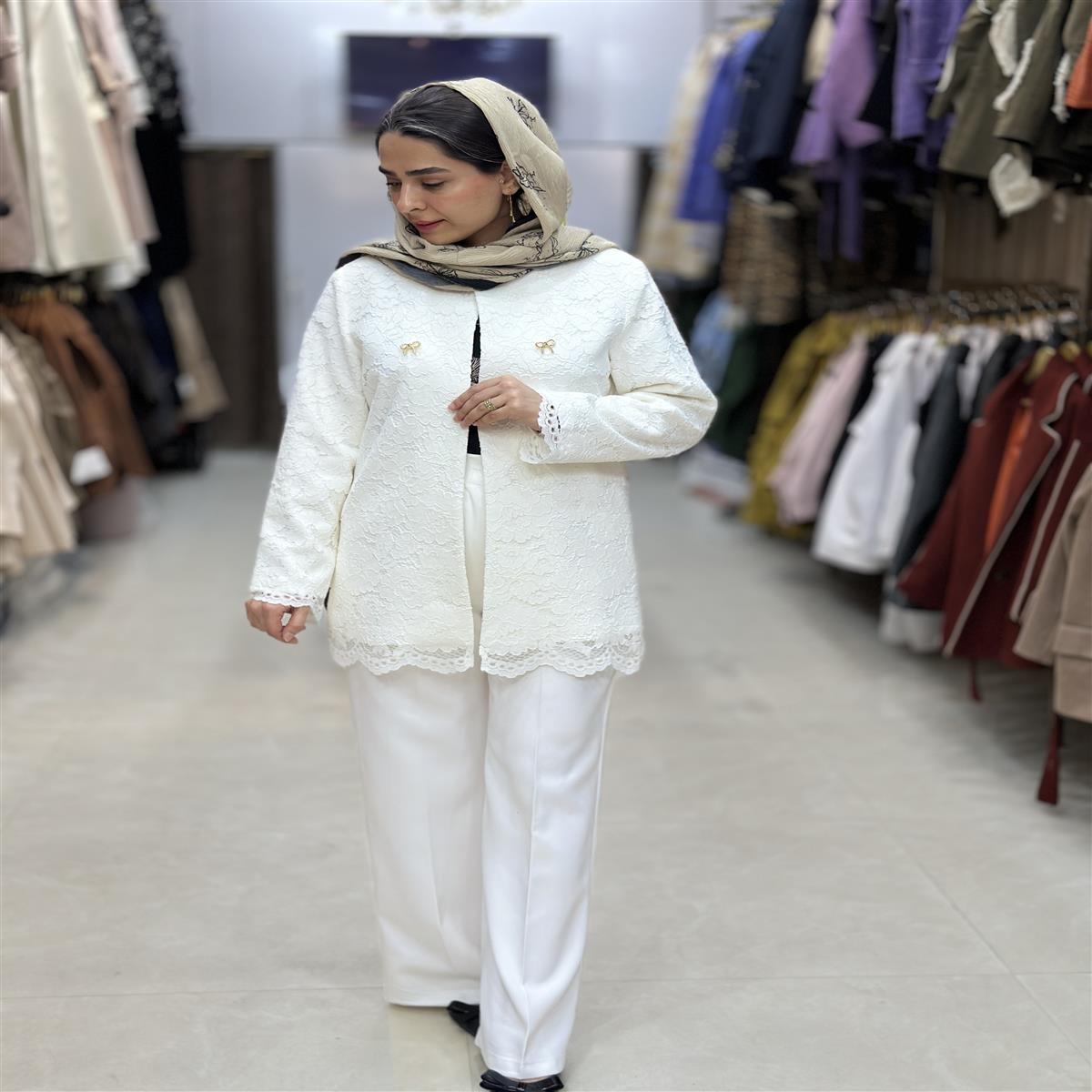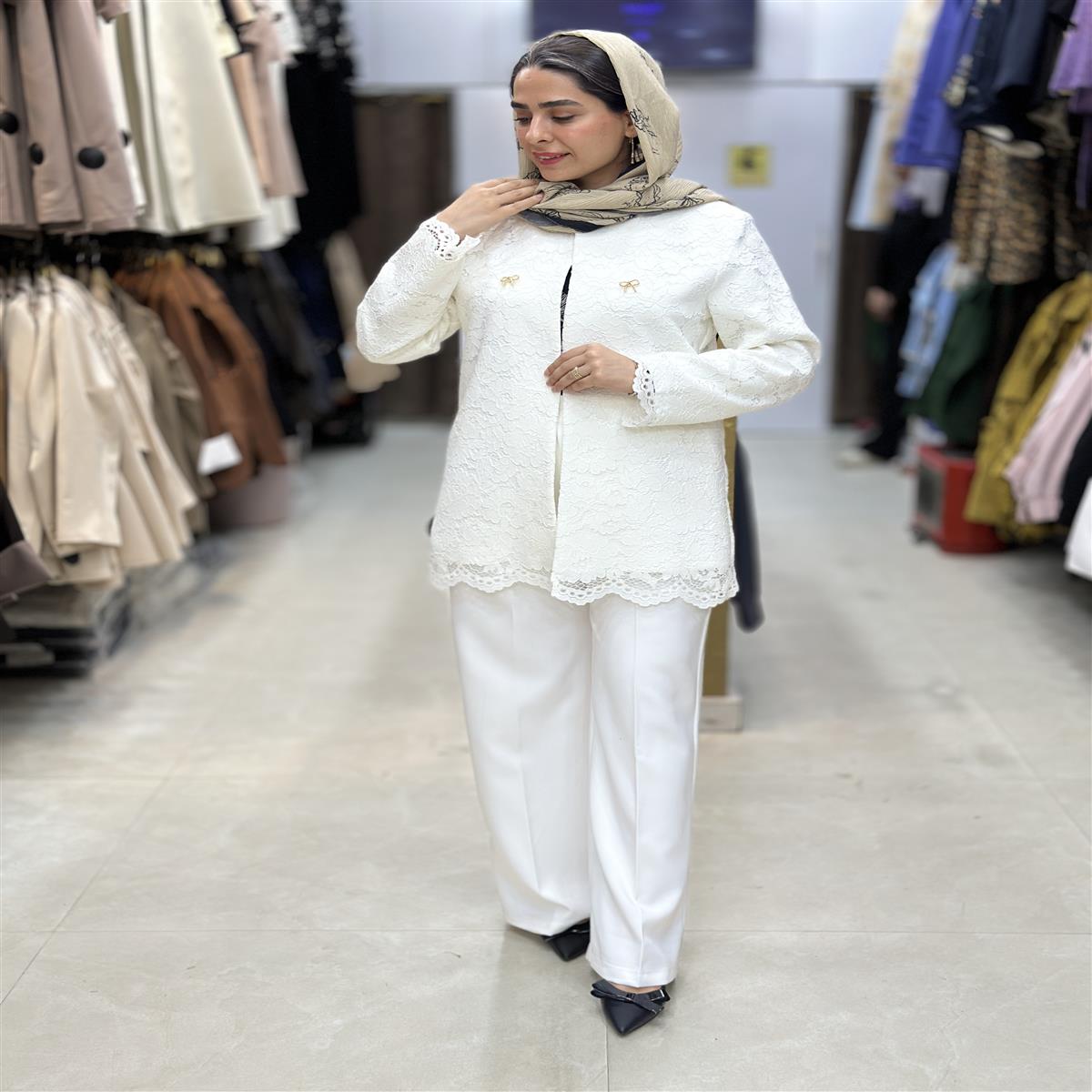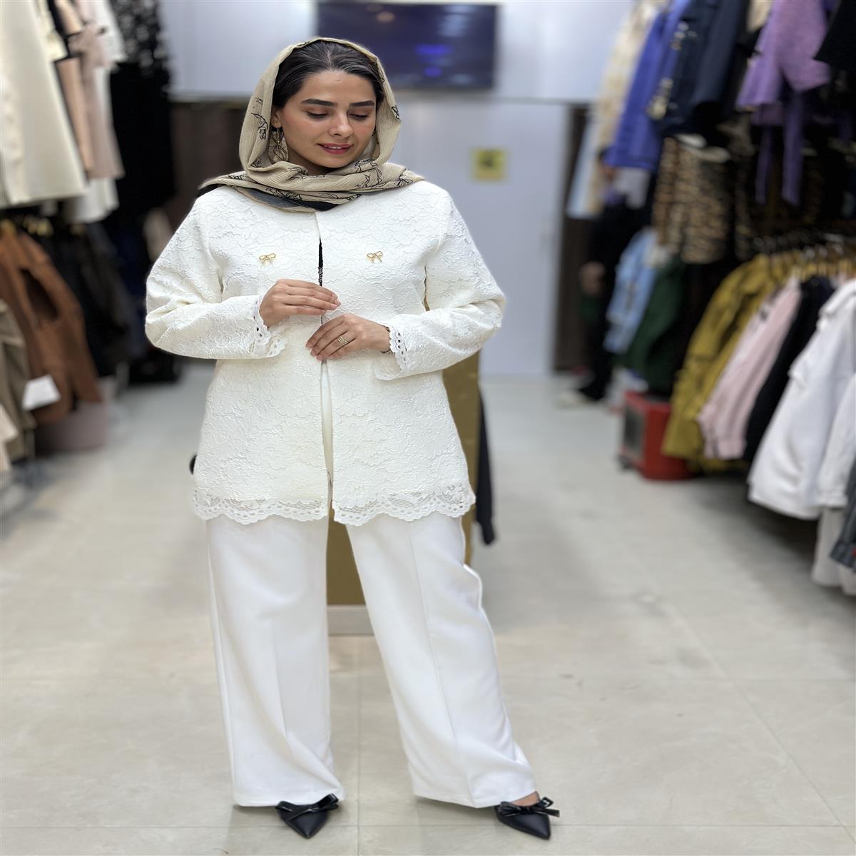 مانتو شلوار مزونی کتان گیپور درجه یک قد ۷۵ سایز ۳۶ تا ۴۶ موجود گیپور وارداتی