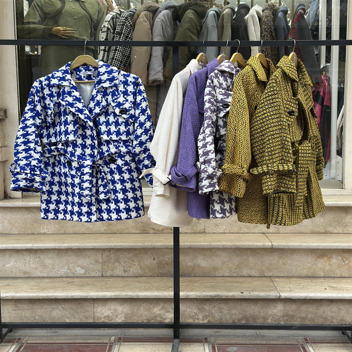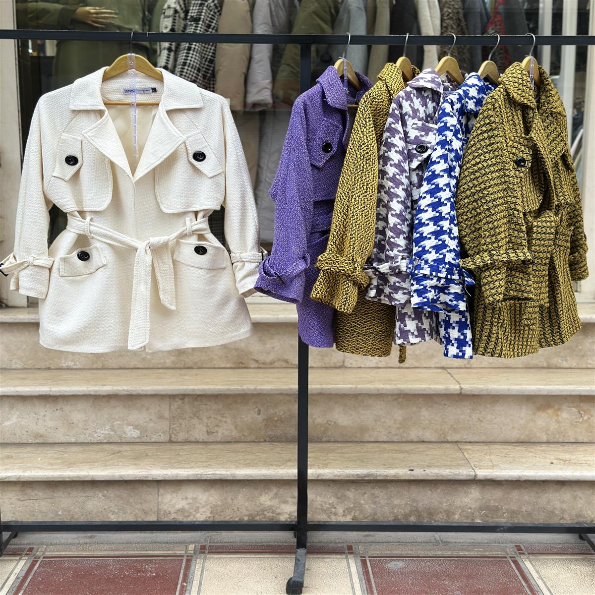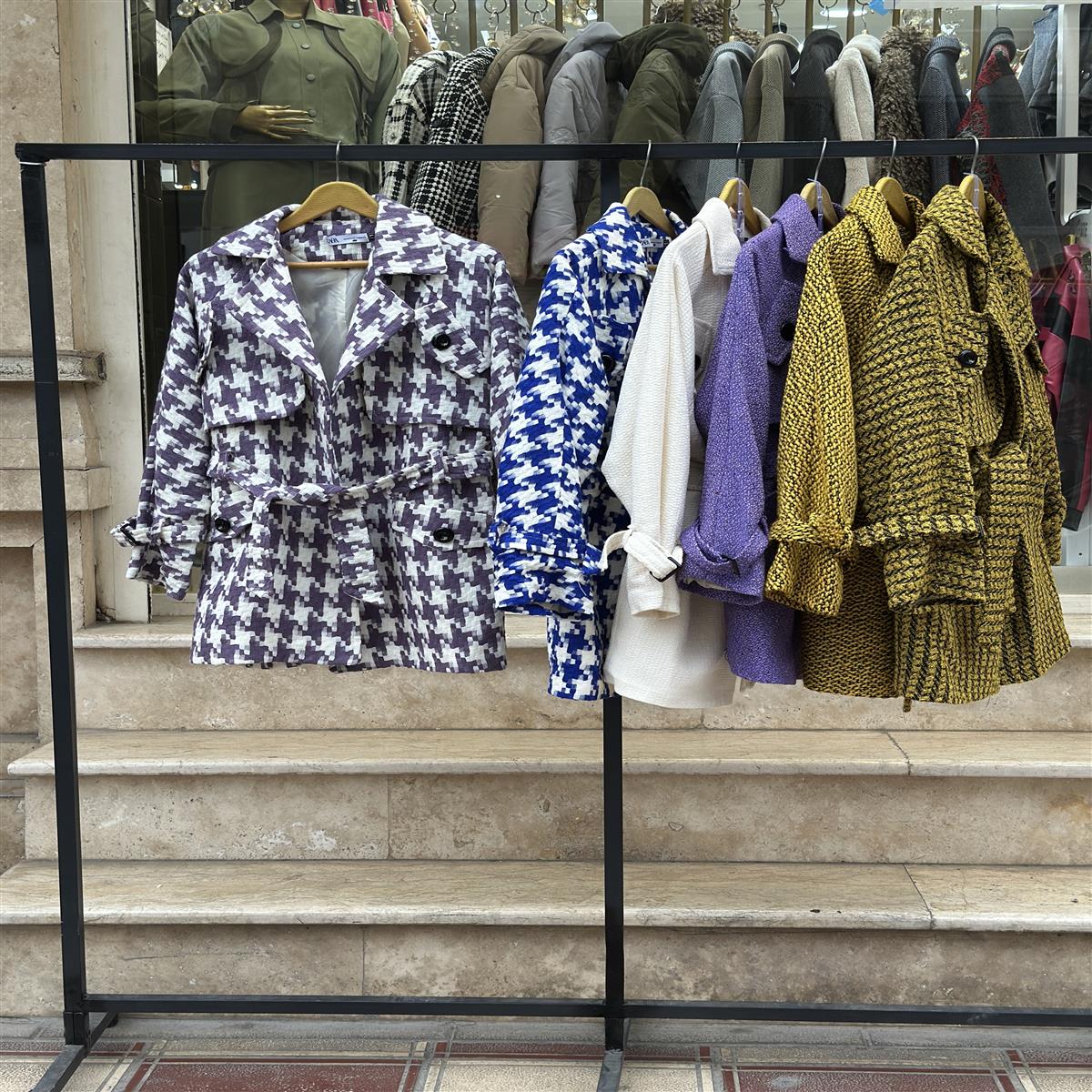 پالتو پشمی 💫استردار💫 سایز۳۶ تا ۴۶ موجود قد۷۹ توجه. رنگ. بنفش کمرنگ. رو‌مدل. پیچازی دورنگ هس🌺