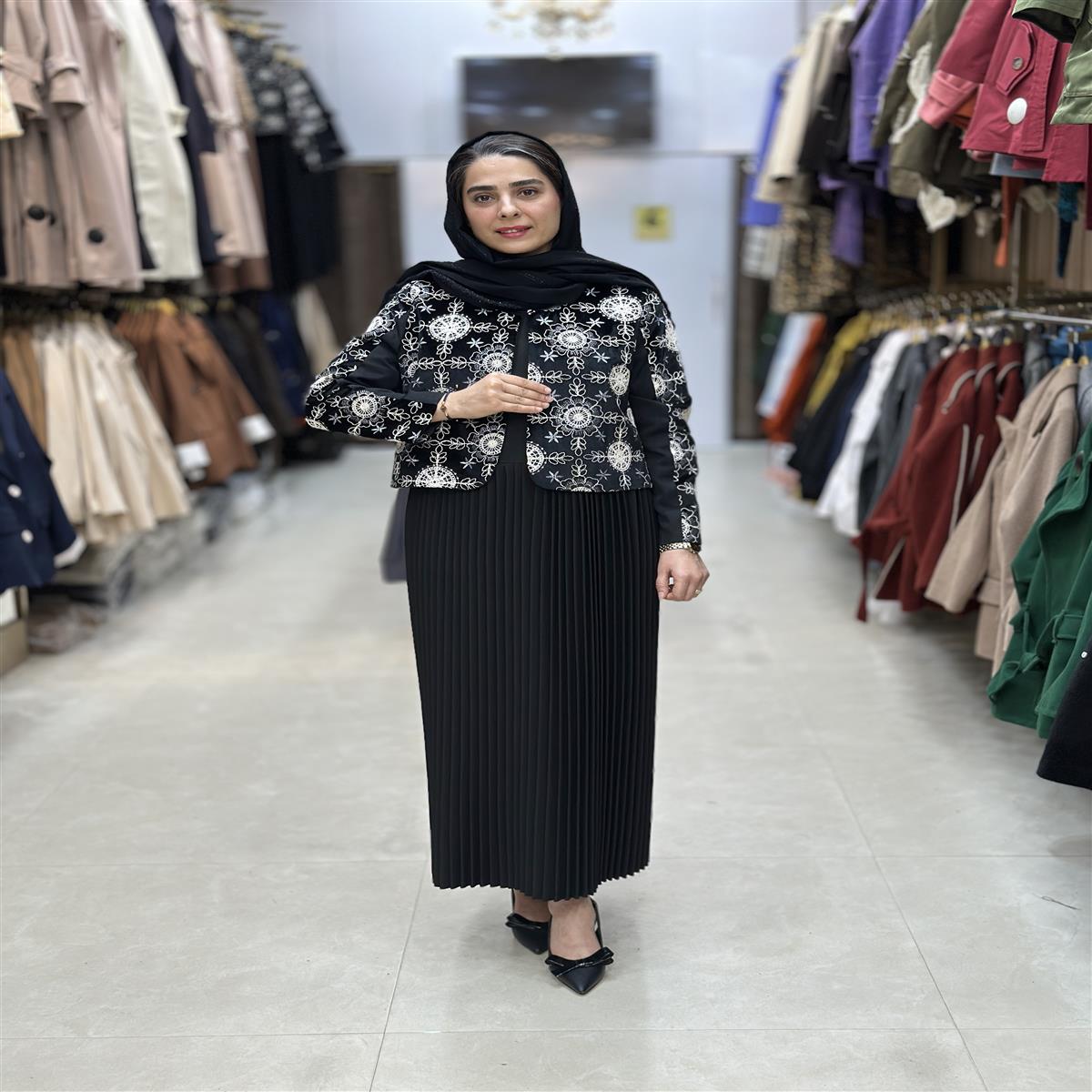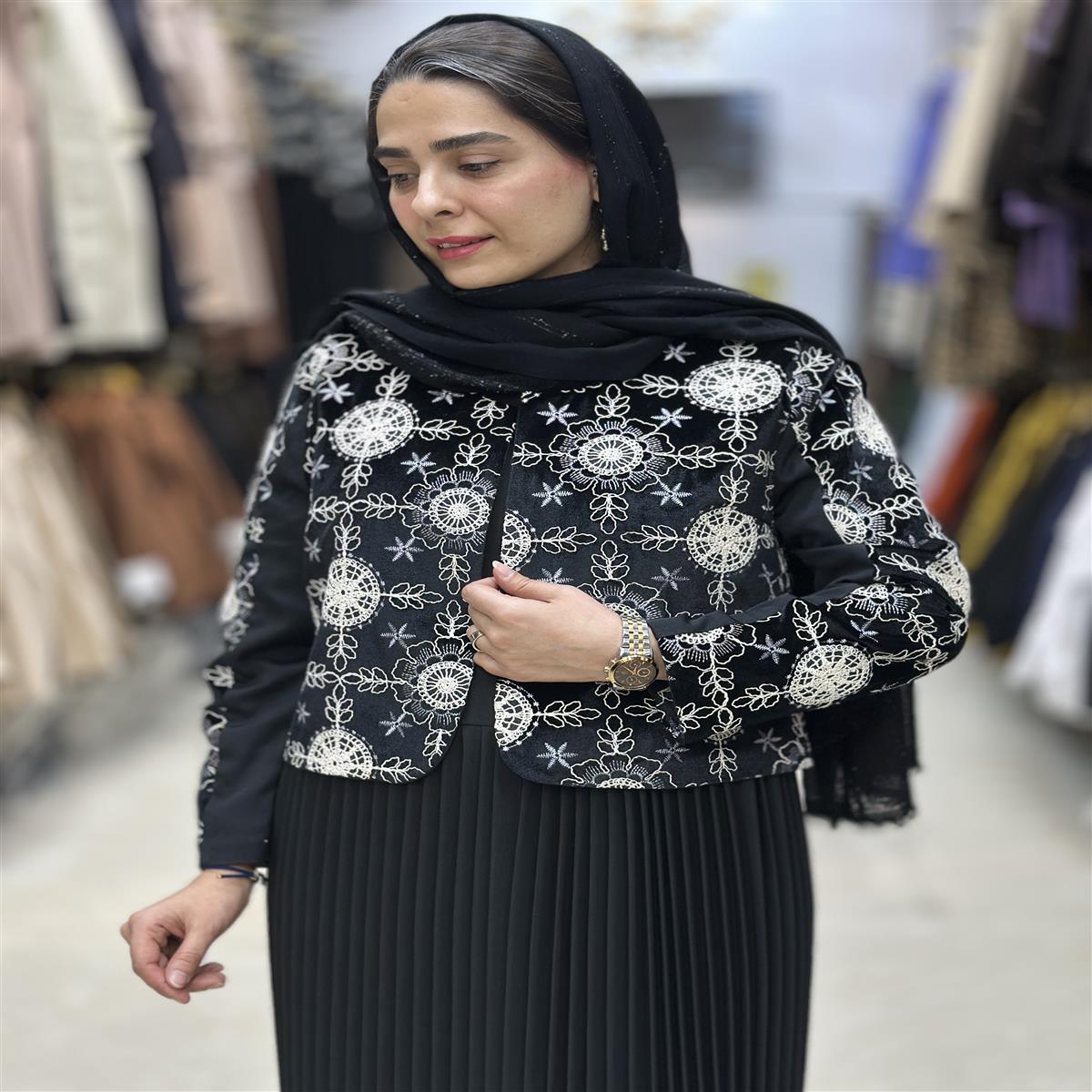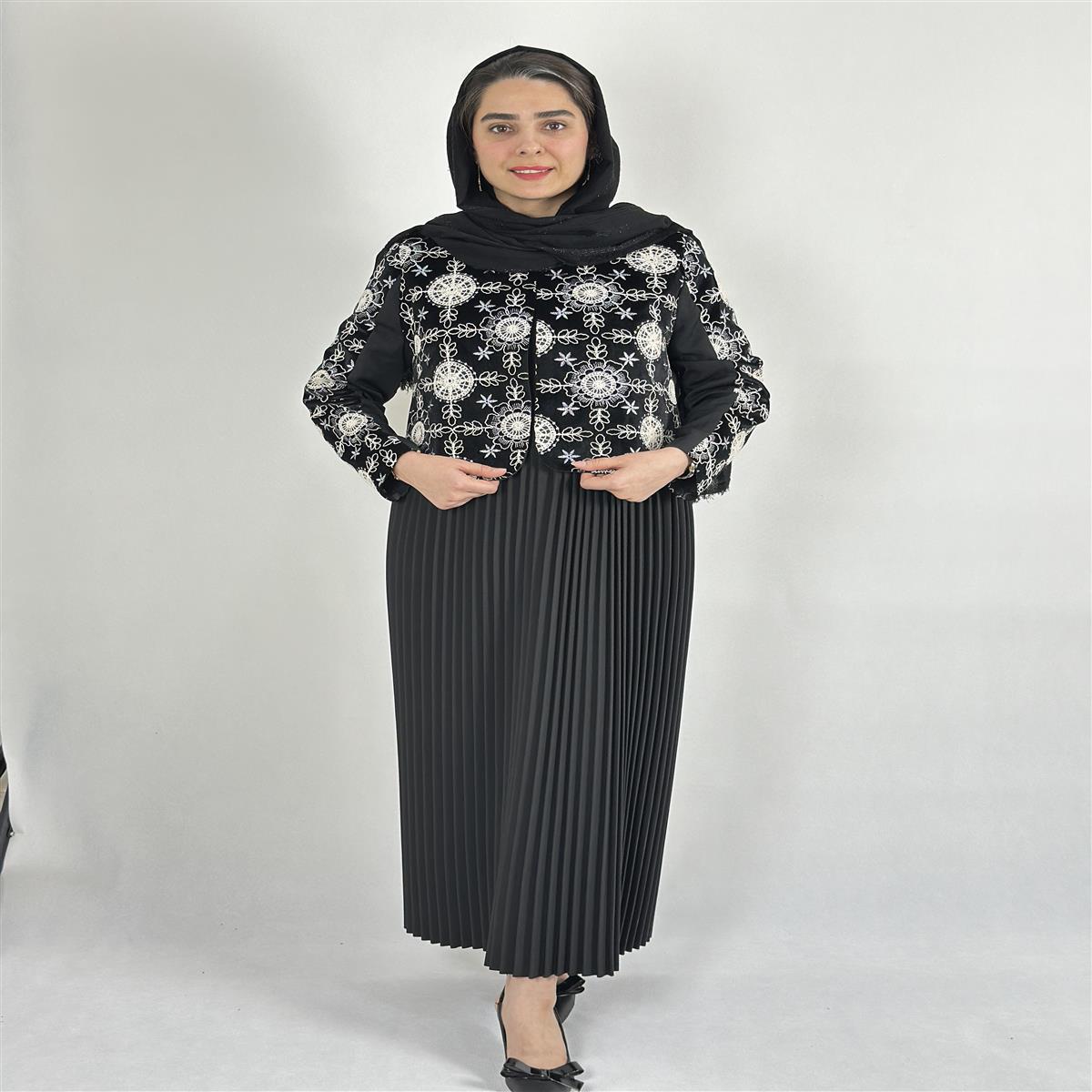 مانتو سارافن سارافن پلیسه درجه یک کت خامه دوزی سایز ۳۶ تا ۴۶ قد ۱۳۰